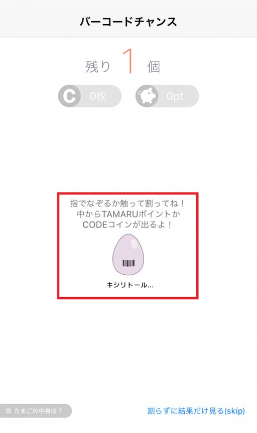 買い物登録完了時に、登録されたバーコードの数だけ「たまご(バーコードエッグ)」が出現します。