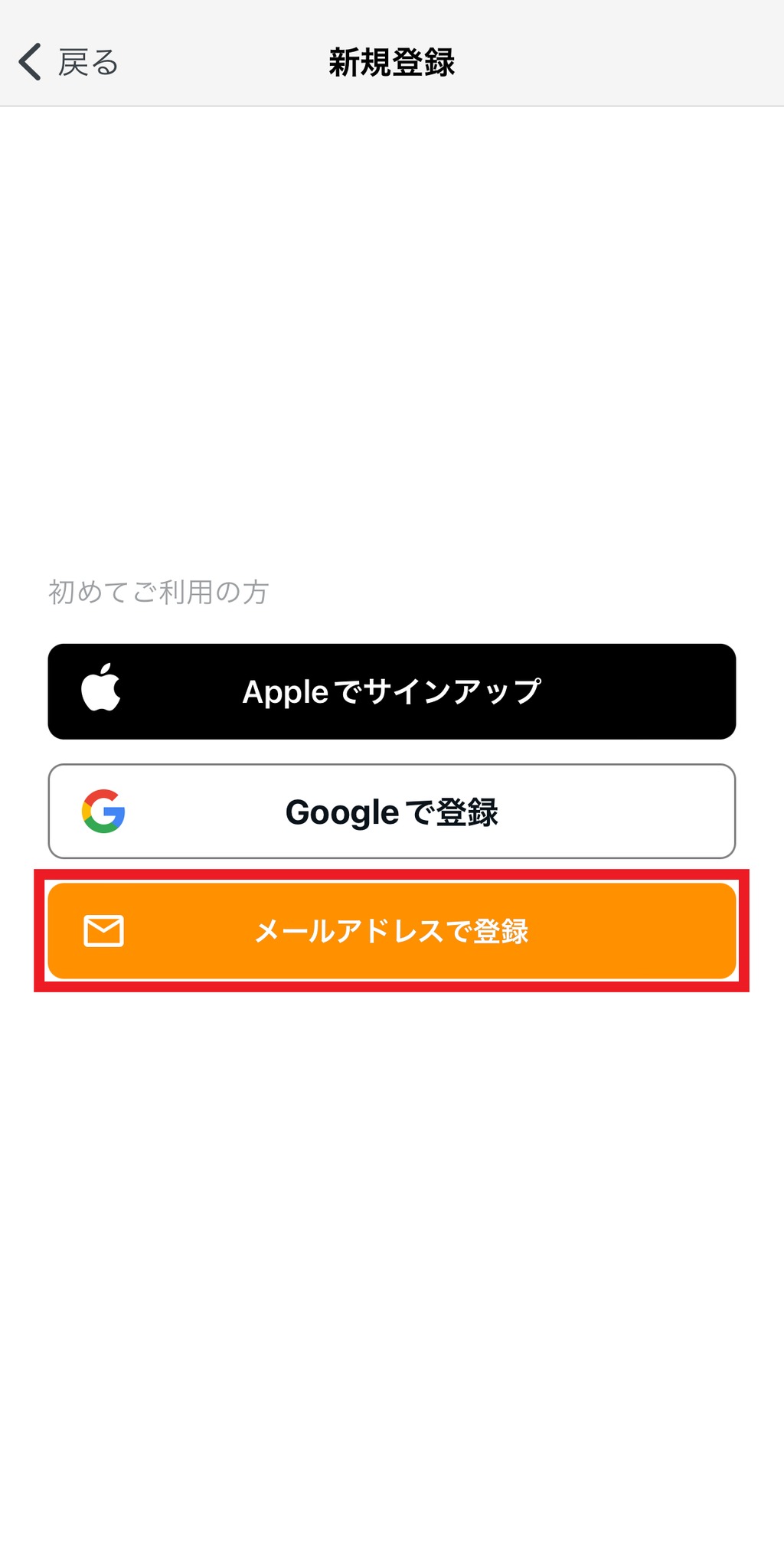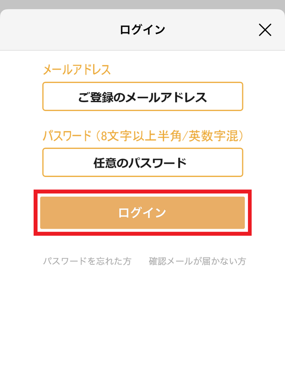 3.設定したメールアドレスとパスワードを入力して、「ログイン」をタップ