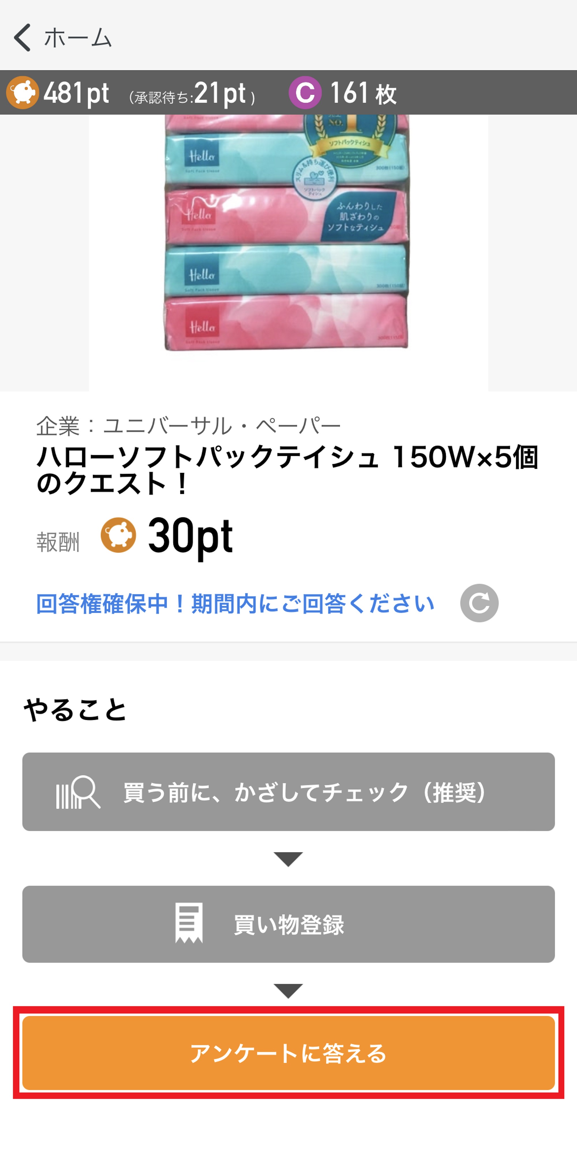 6.「アンケートに答える」をタップ