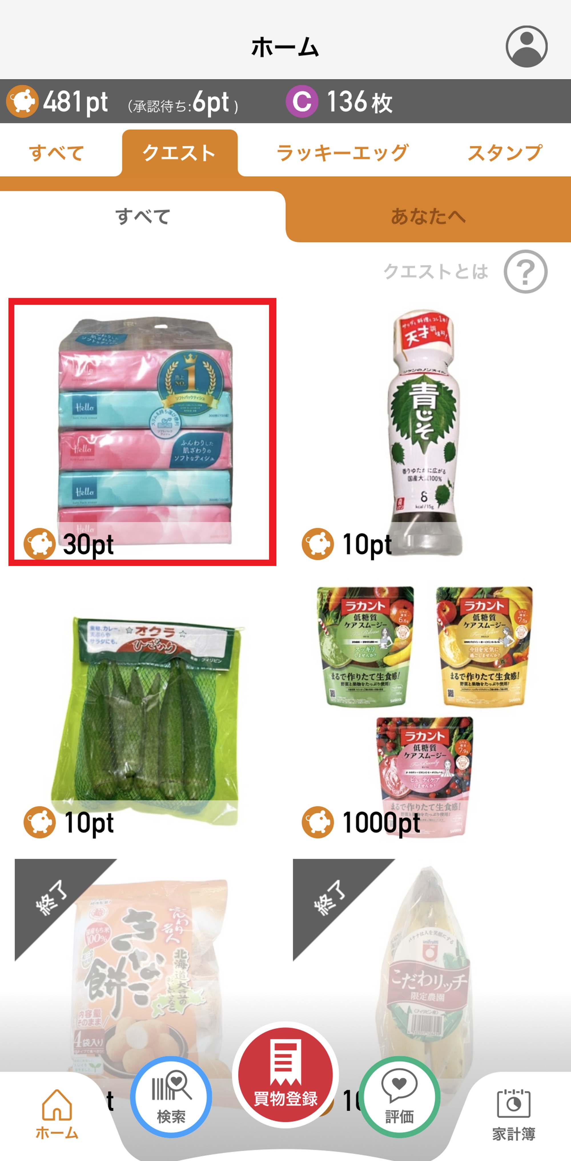 4.対象商品を購入して、買い物登録