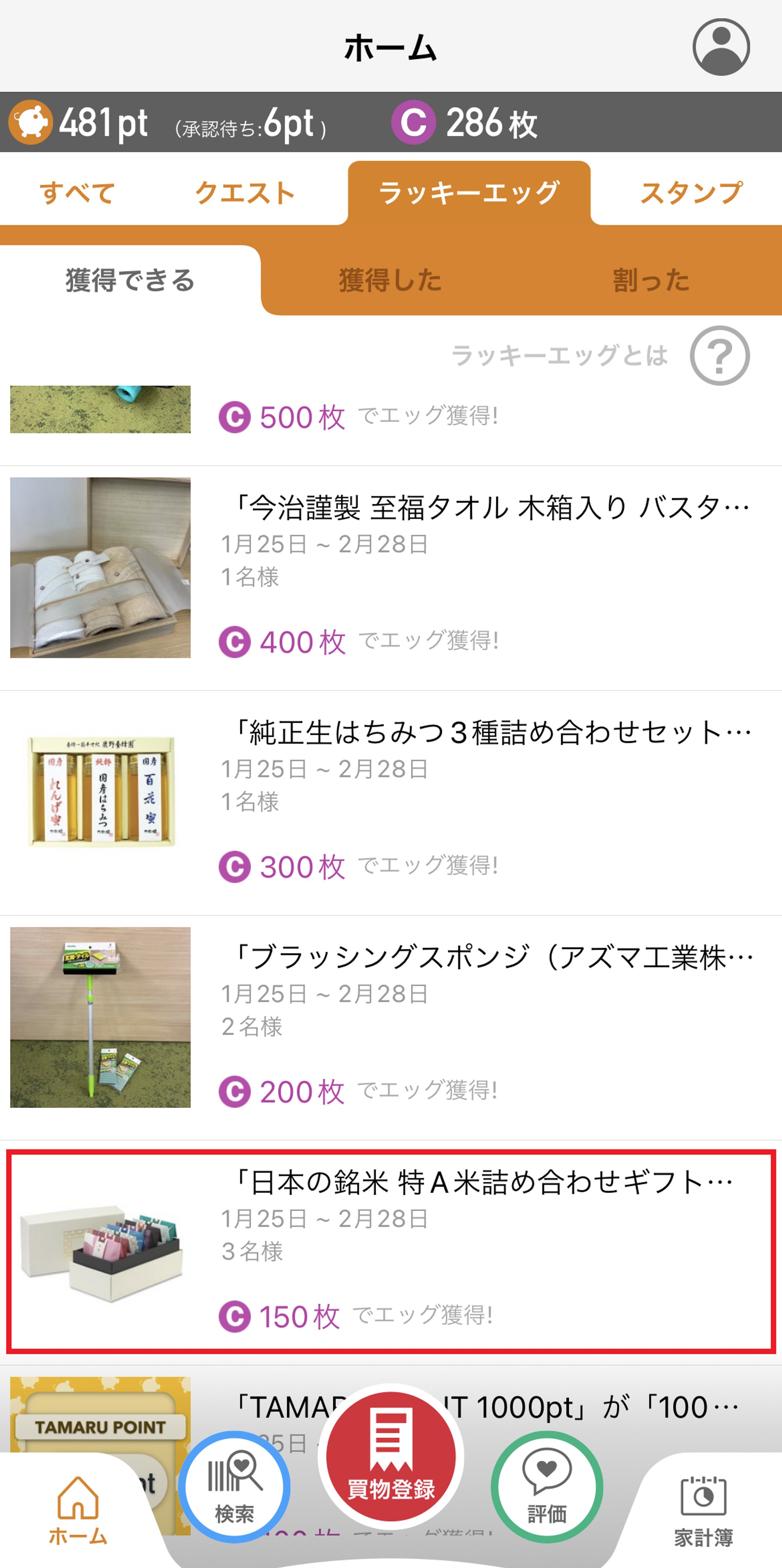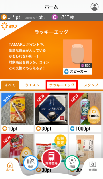 1.ホーム画面で「ラッキーエッグ」をタップ