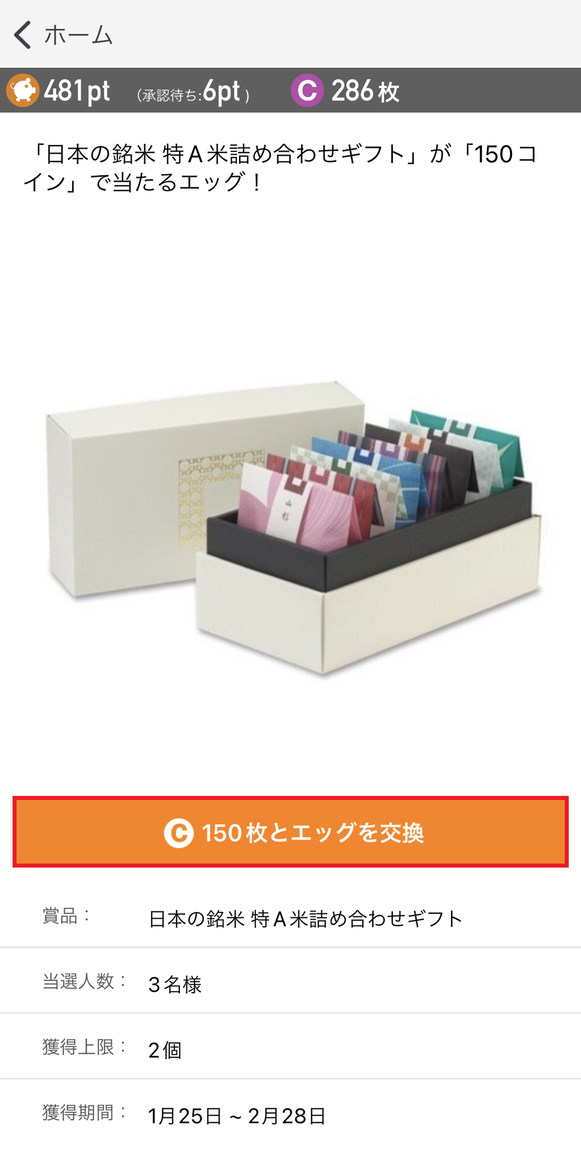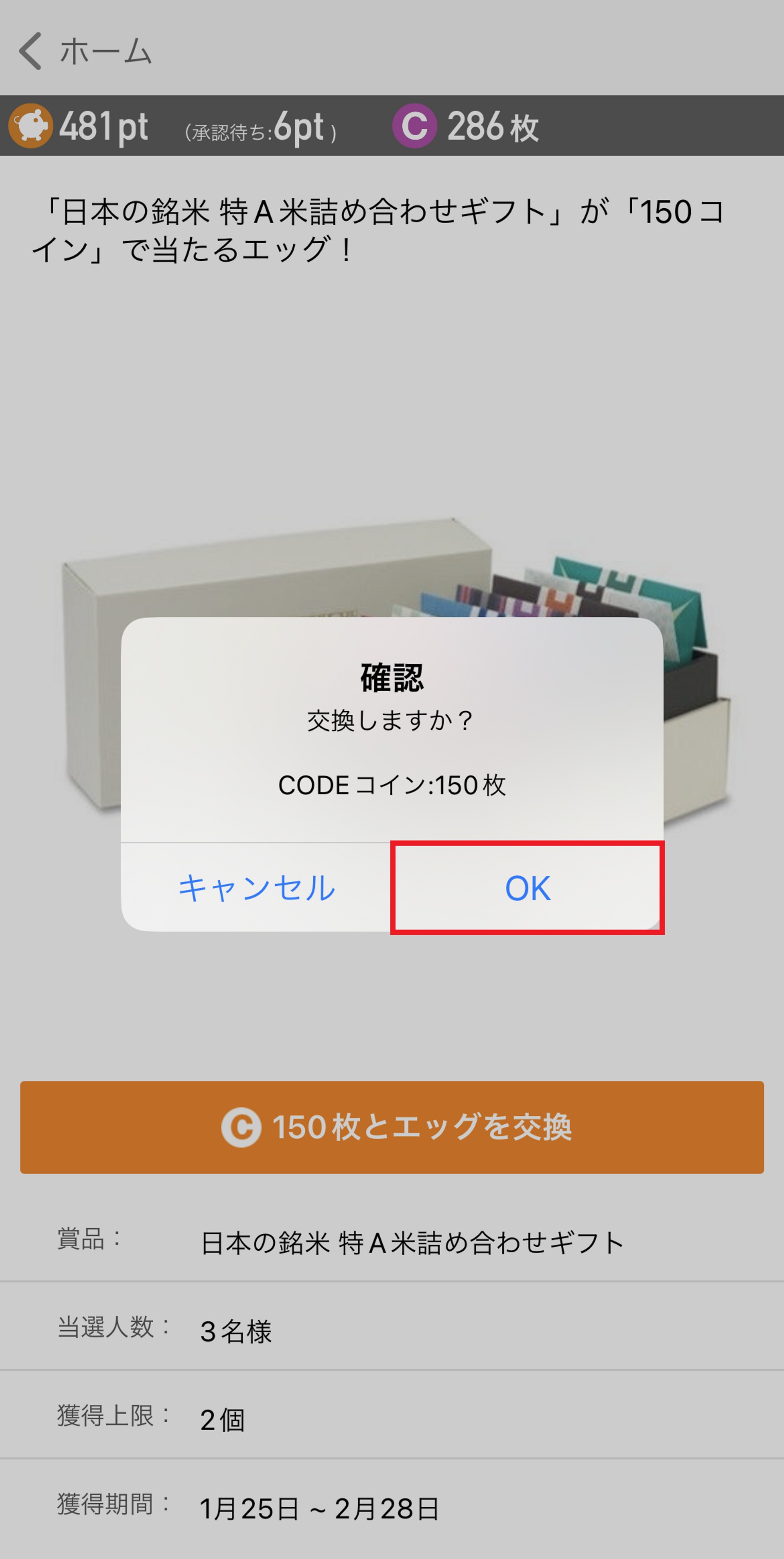 3.エッグの詳細を確認して、「C ○○○枚とエッグを交換」をタップ