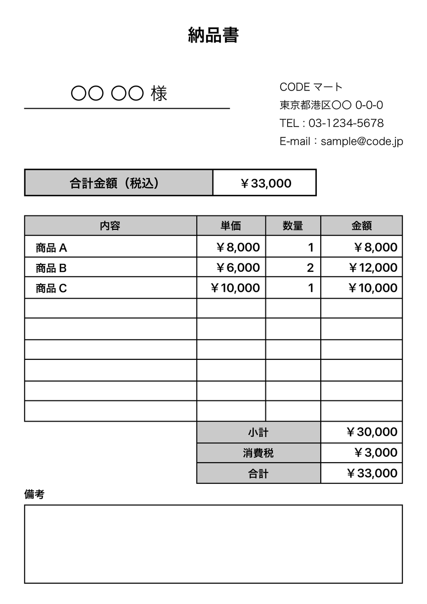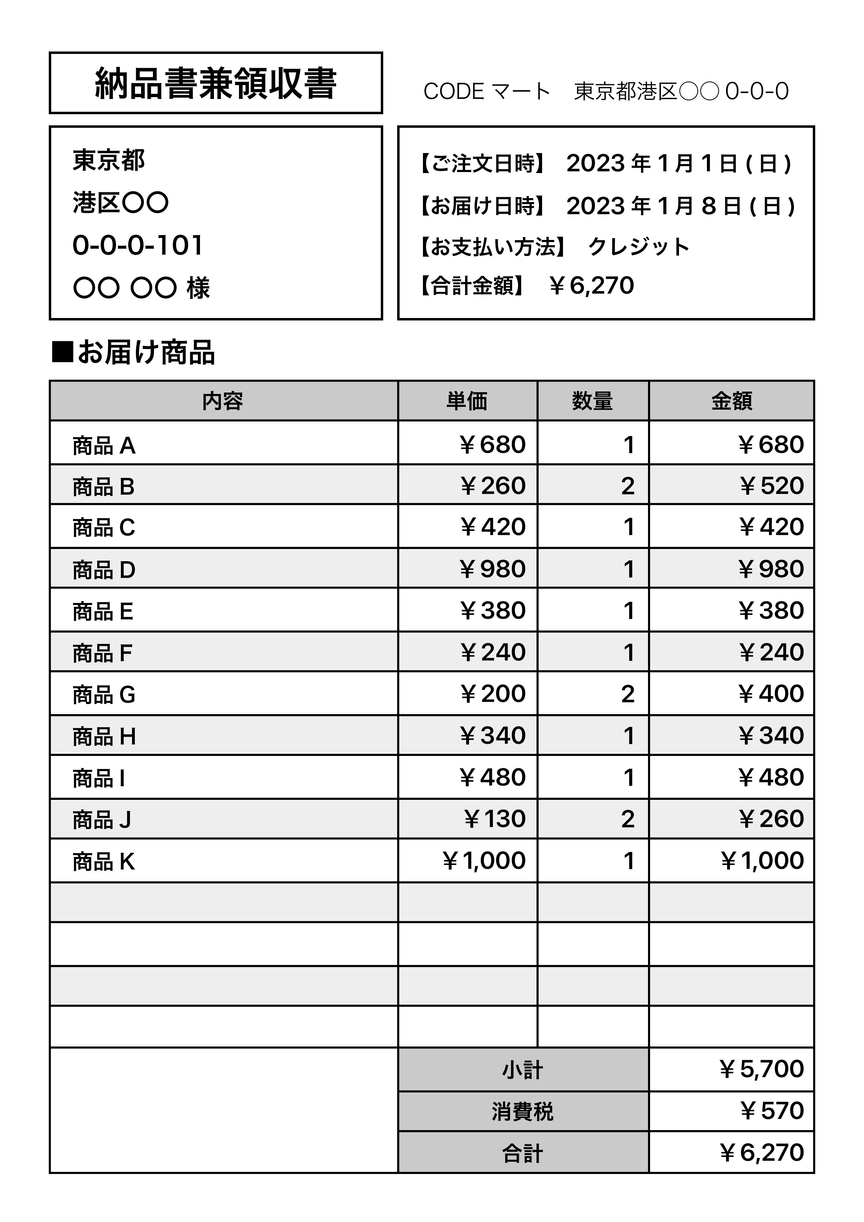 明細書や納品書によっては、日付や店舗連絡先の記載がないことがあります。