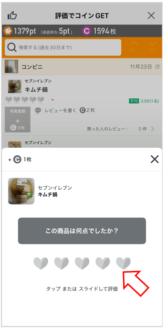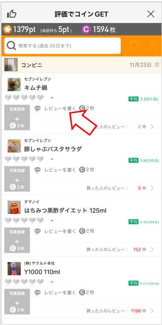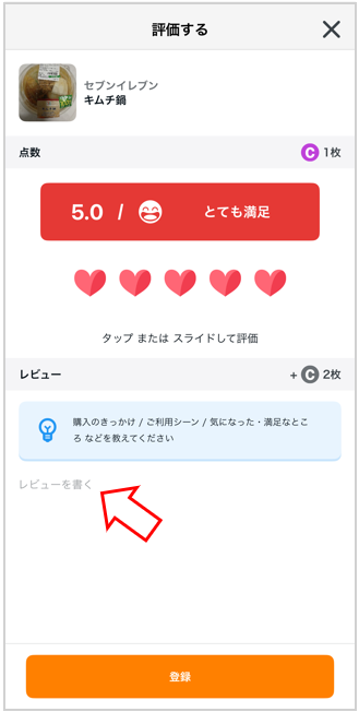 - 点数やレビューを入力して登録 点数、レビューを登録すると、それぞれ2枚ずつCODEコインが獲得できます