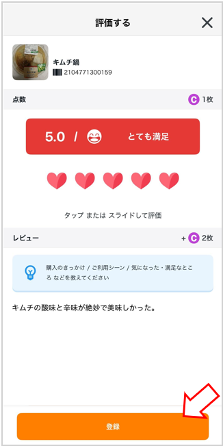 - レビューを編集して右上の登録または送信をタップ