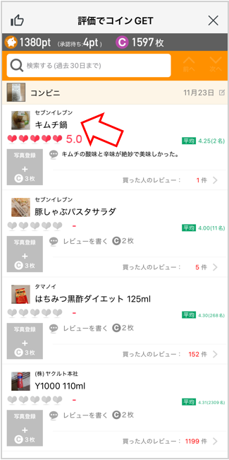 - レビューの内容を編集したい商品をタップ