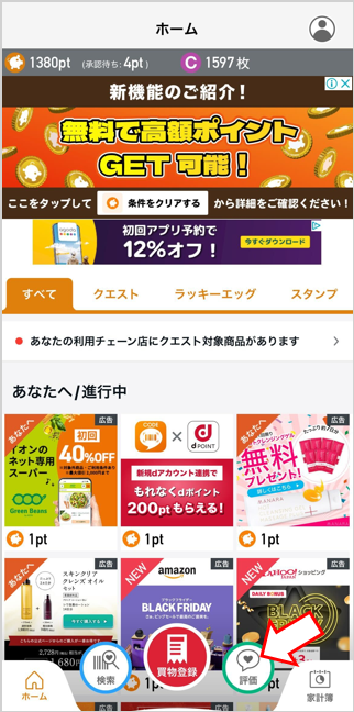 - ホーム画面の評価をタップ