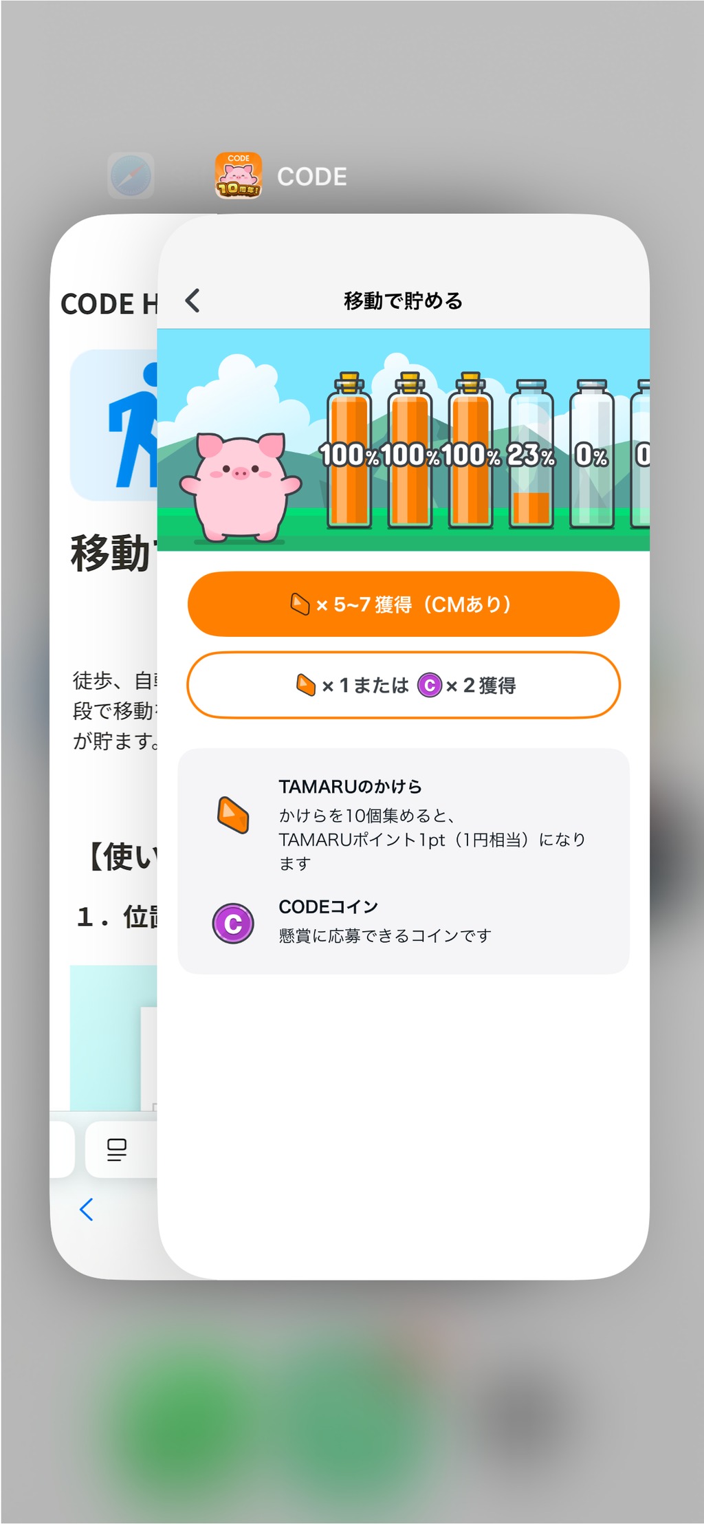CODEを使用していない間も、アプリを終了せずにバックグラウンドで起動したまま(AppスイッチャーにCODEが残っている状態)にしてください。