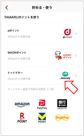 【TAMARUポイント → ドットマネー → 交換先サービス】