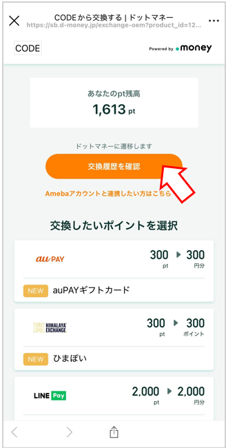 CODEからドットマネー通帳を確認する手順は以下になります。