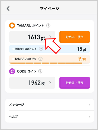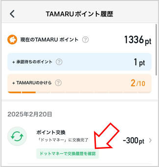 ①TAMARUポイントからドットマネーへ交換した履歴の確認手順