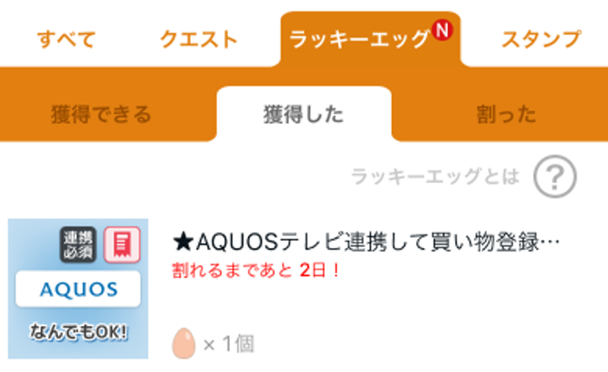 - AQUOSテレビ連携限定ラッキーエッグの数を確認