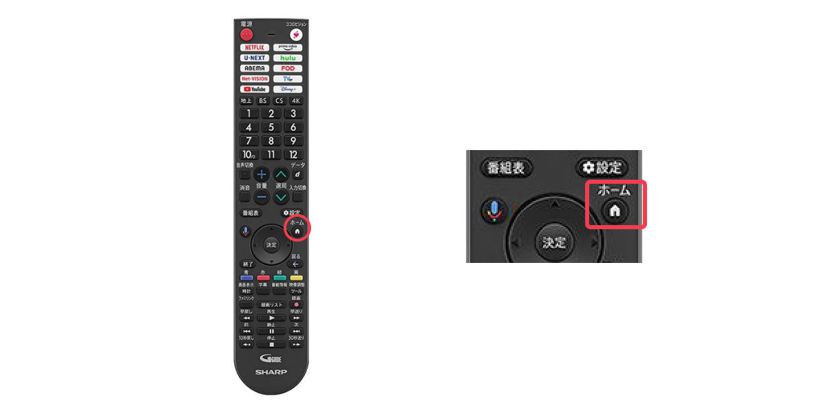 - テレビリモコンの「ホーム」ボタンを押下