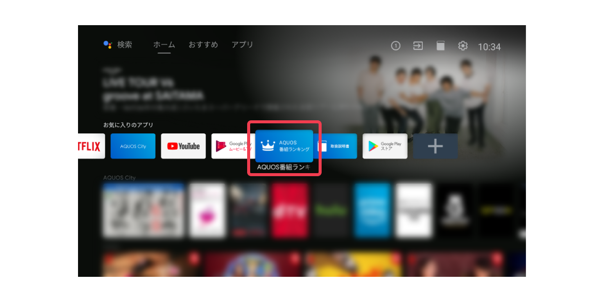- 「AQUOS番組ランキング」アプリを選択 ※アプリの位置は異なる場合があります