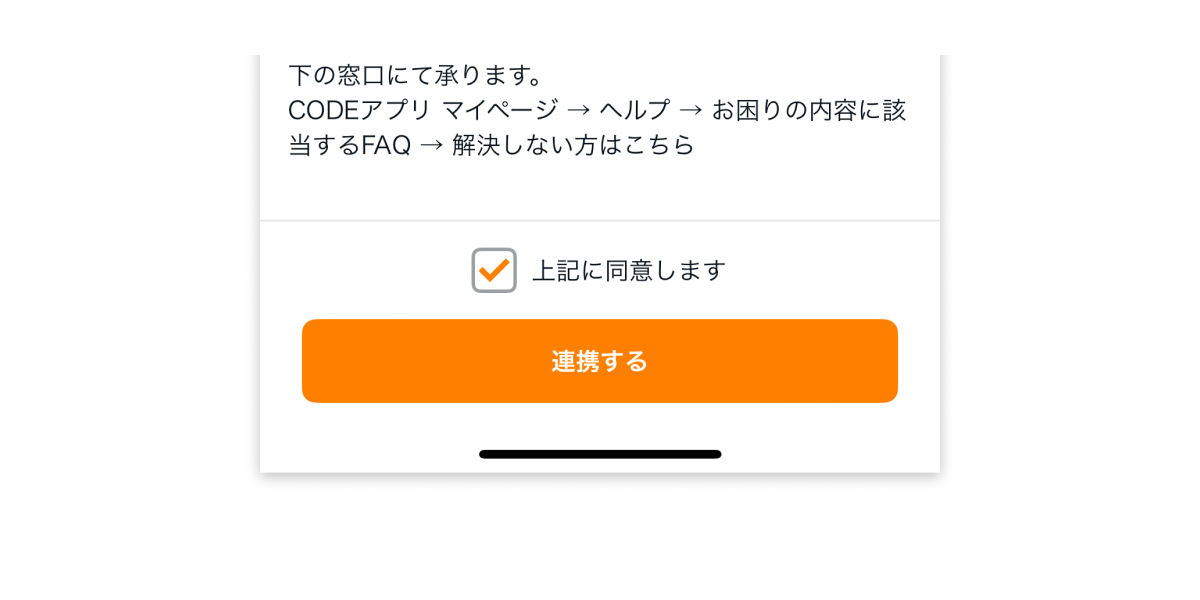 - 利用規約を確認し、「上記に同意します」にチェックを入れ、「連携する」をタップ