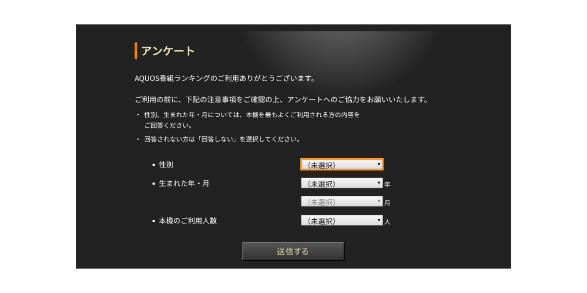 - 「AQUOS番組ランキング」アプリのご登録がお済みでない方は、登録画面が表示されます ※すでに登録済みの方には表示されません(手順9へ)