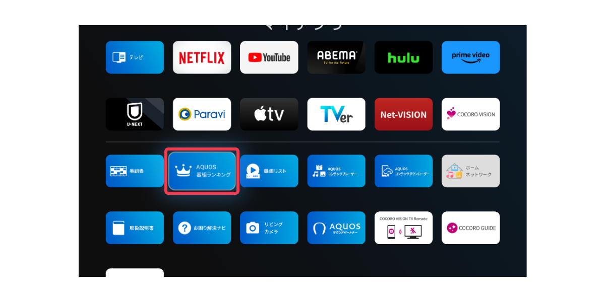 - 「AQUOS番組ランキング」アプリを選択 ※アプリの位置は異なる場合があります