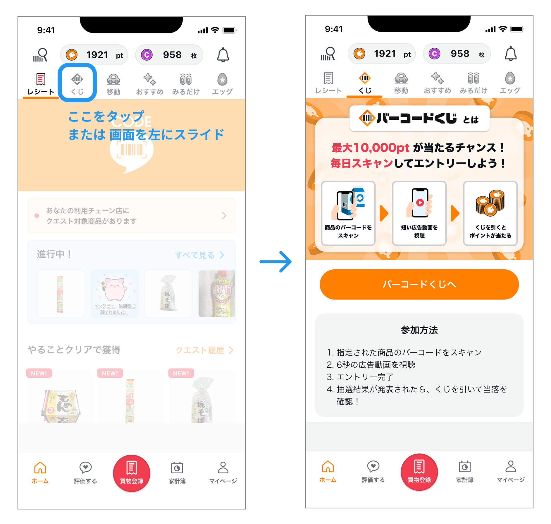 画面上部のタブをタップ または 画面を左右にスライドすることで、各機能にアクセスしやすくなり、より便利にお使いいただけます。